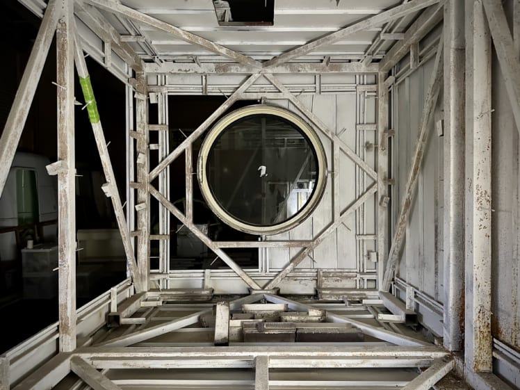 実は、解体工事中にカプセルの交換そのものが難しいつくりだったことも分かりました。今回の解体工事ではジャッキを使ってタワーからカプセルを離し、ボルトなども溶断して、ようやくタワーからカプセルを引き剥がすような状態でした。